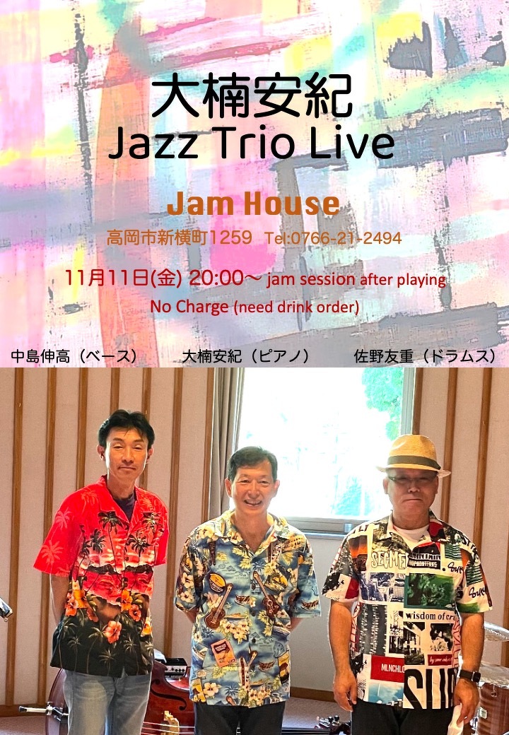 高岡ジャムハウスで、私のピアノトリオのライブを行いました。