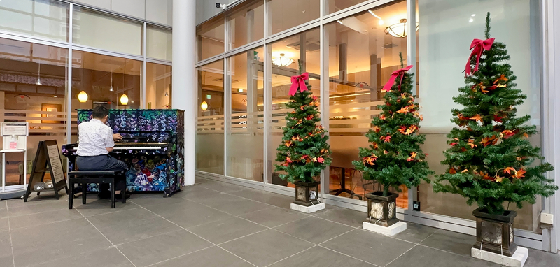 無味乾燥となりがちな人の行き交う場所に、ピアノの音が聞こえてくると、潤いのある空間を感じさせくれます。