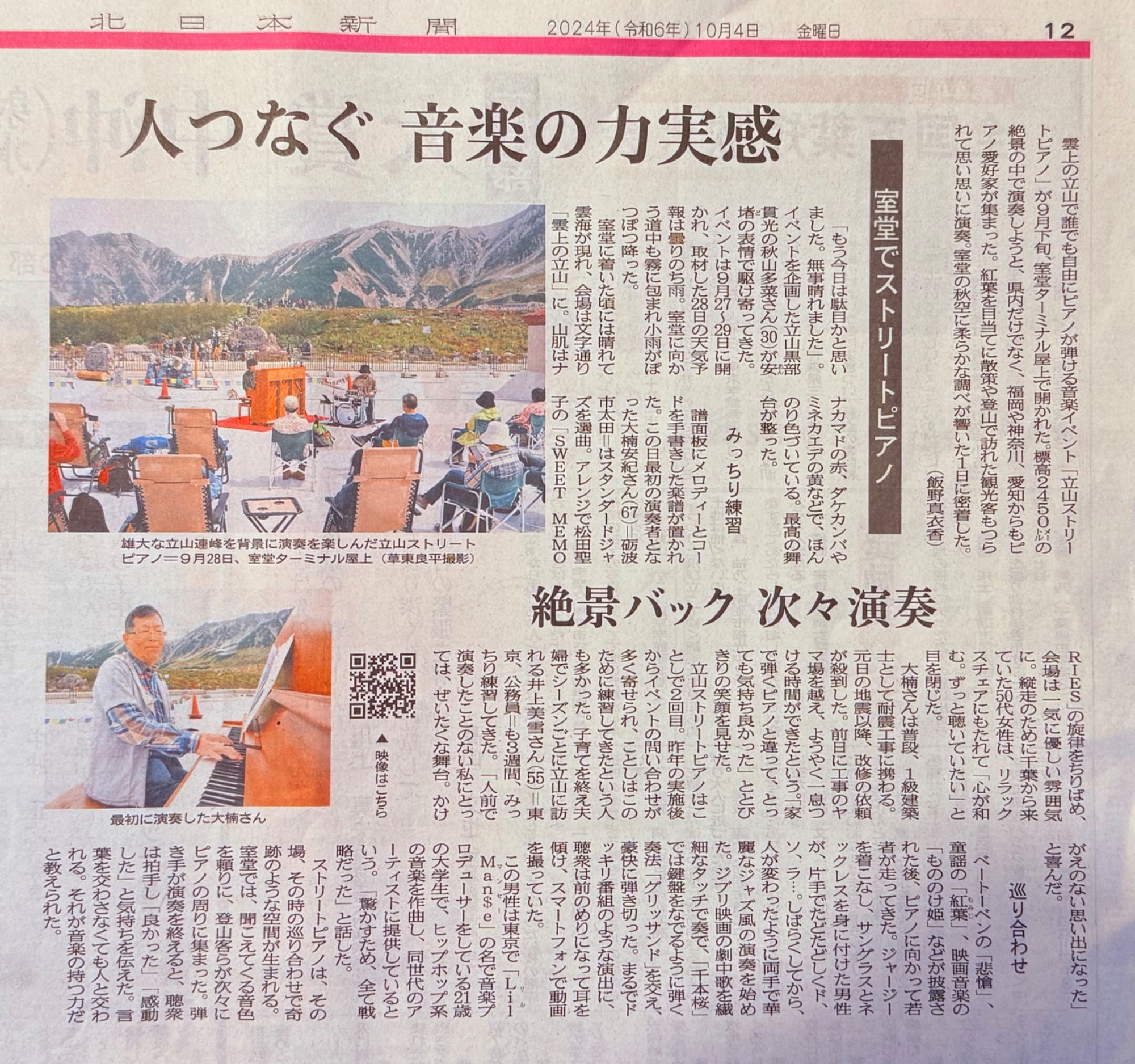 2024年9月27日〜29日立山室堂ターミナルにストリートピアノが設置されました。