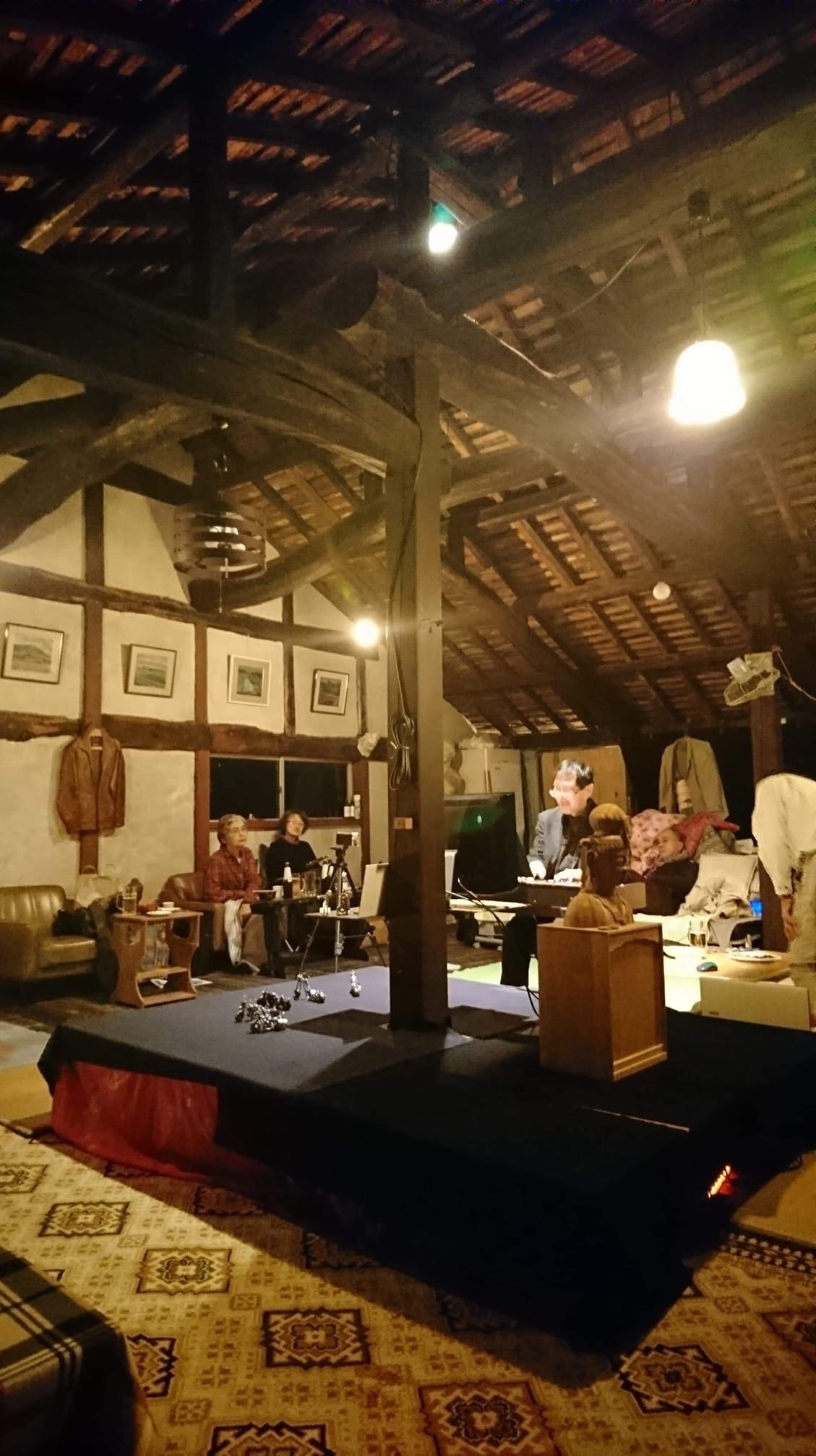 「森林木ギャラリー」秋の芸術収穫祭ジャズピアノコンサート 2019.11.22 わが家からすぐ近所の古民家に移住し、彫刻家として活躍されている嶋田秀男さんが、 秋に、芸術収穫祭として色々な作品をギャラリーとして展示しています。 その、オープニングパーティとして、僕のジャズピアノコンサートをさせて頂くことになりました。 古民家にピアノの音が心地よく広がります。 今僕が耐震改修しているお施主様や、太田の「ものがたり診療所」のオーナーなどにも来て頂き、楽しい雰囲気の中で演奏できました。 パーティでは、「別邸 はなや」や「すどまりとなみ」のオーナーと夜遅くまで飲み明かしました。