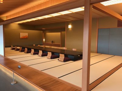 金沢建築館では迎賓館赤坂離宮和風別館「游心亭」の主和室と茶室を忠実に再現してあり、その場はやはり繊細で落ち着きます。今回は特別に結界のなかにあり普段来館者が座れないお茶室周囲の椅子に座らせて頂くことができ満足です。企画展示では谷口吉郎氏の卒業設計(実図面)があったり、とても興味深く拝見しました。谷口吉郎氏が亡くなった昭和32年2月、同じ月に私が生まれていますので、なにか繋がりを感じますね。