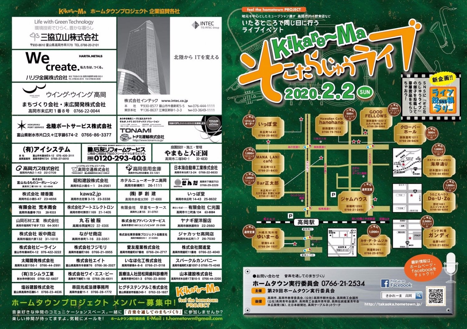 Kikare-Ma そこたらじゅうライブ iBop 2020.01.26 高岡市のいたるところで同じ日に行うライブイベントに、私がやっているバンドiBopが参加します。 場所はホームグラウンド「Jam House」です。 午後8時から演奏開始。 ジャムセッションも予定していますので、演奏される方は楽器を持って遊びに来て下さい。 日時:2020年2月2日日曜日 20:00〜23:00 場所:ジャムハウス 高岡市新横町1259 iBop: ピアノ:大楠安紀 ギター:居村猛 ベース:中島伸高 ドラムス:稲垣英晴 ヴォーカル:細木優輝