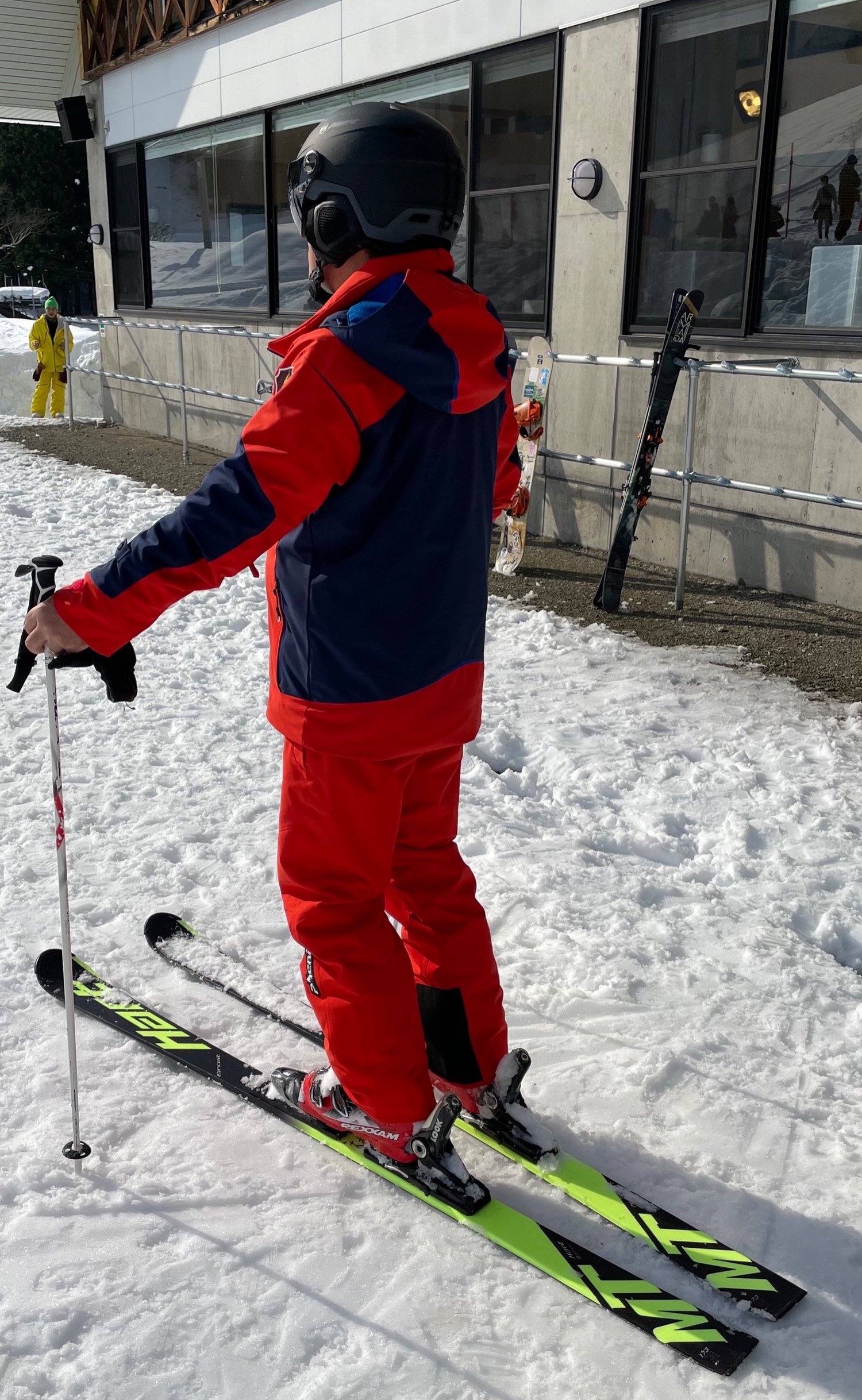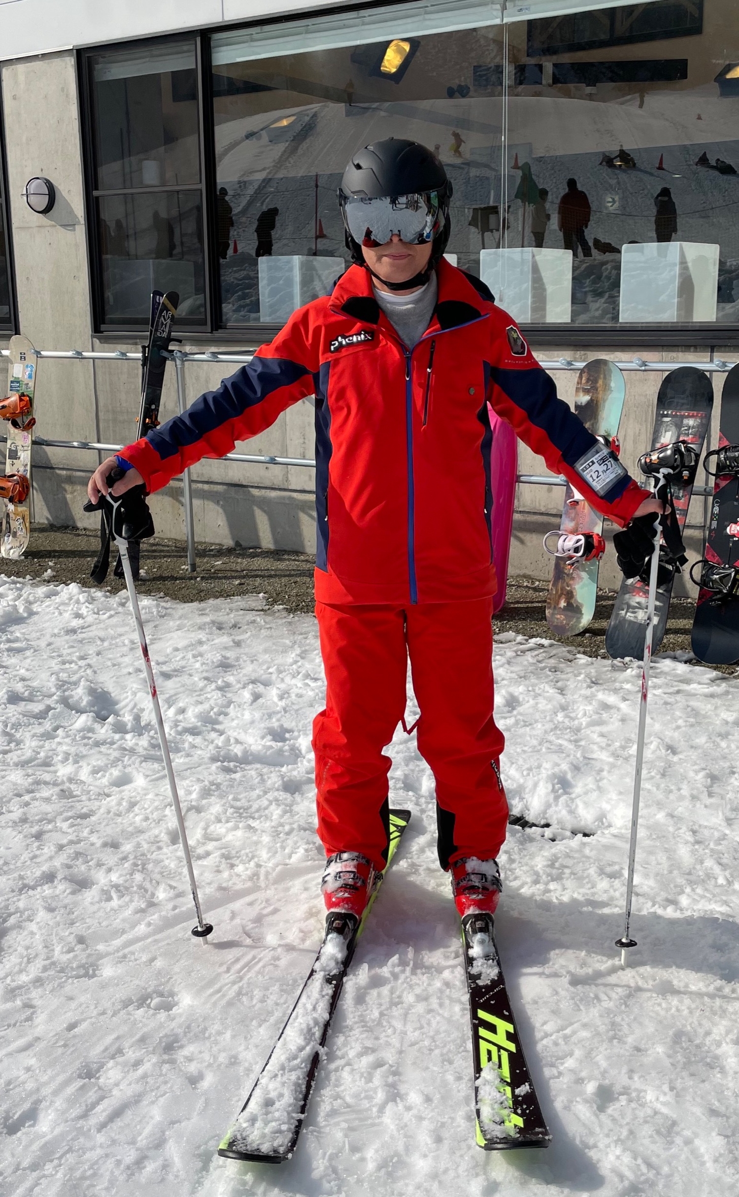 新ユニフォーム 2020.12.28 正面から、全面赤に腕の所に紺が入ります。 後ろから、背中に紺が入ります。 ズボンの色違いです。 色違いズボンの後ろ姿です。 私の所属する高岡市スキー連盟のユニフォームを新調しました。 赤を基調に紺を配色した色調です。 メンバーが揃って滑ると目立つでしょうね。 会員の中では、たぶん最初にこのユニフォームでゲレンデを滑りました。