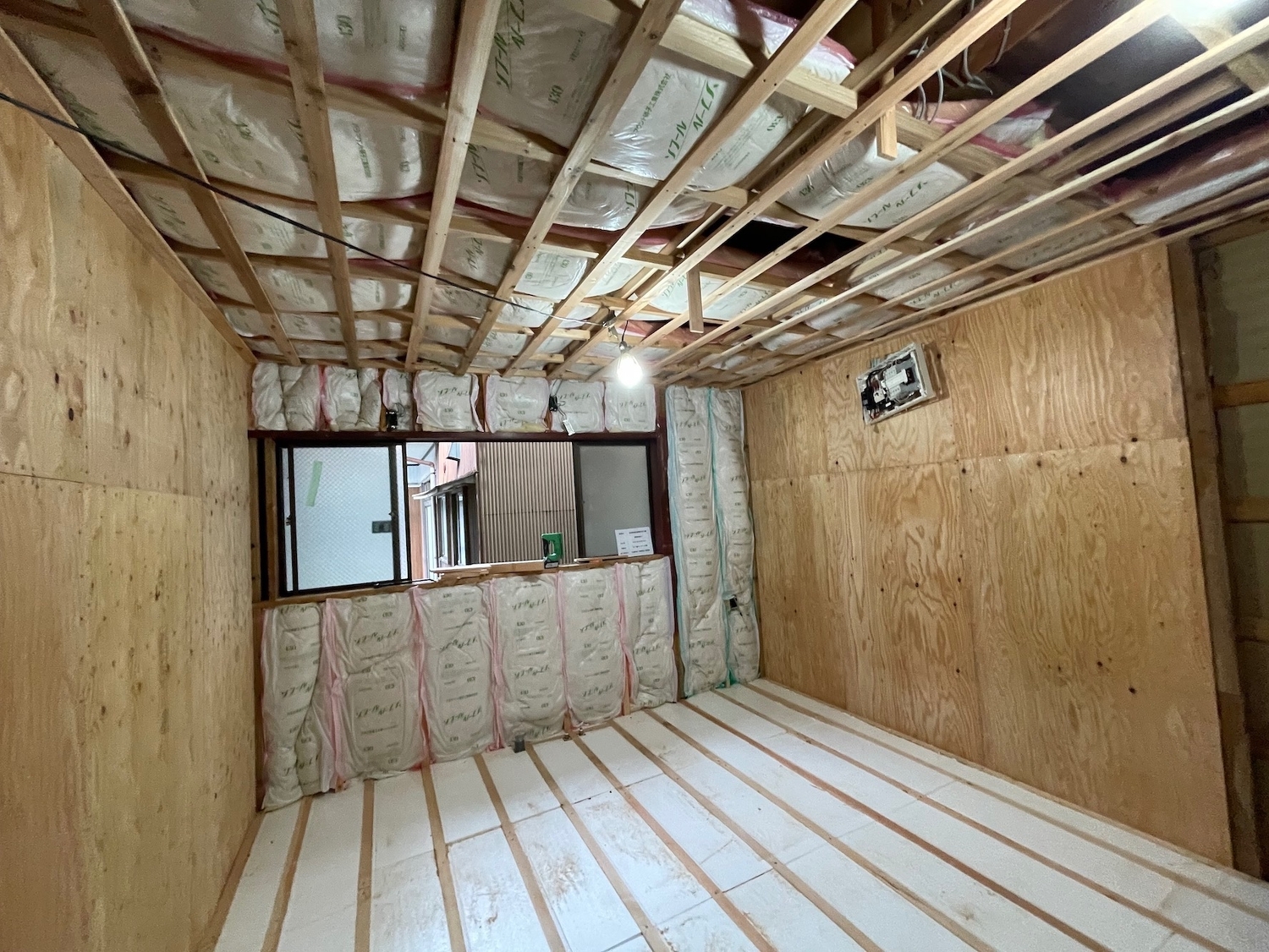 合わせて、壁、床、天井に断熱材を挿入し、開口部に樹脂内窓を設置することにより、断熱性を向上させるエコリフォームを行いました。