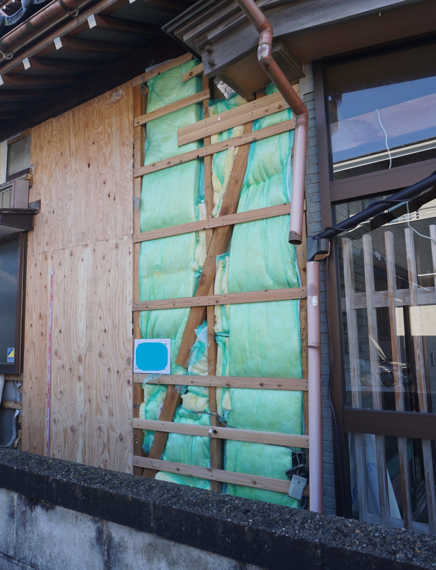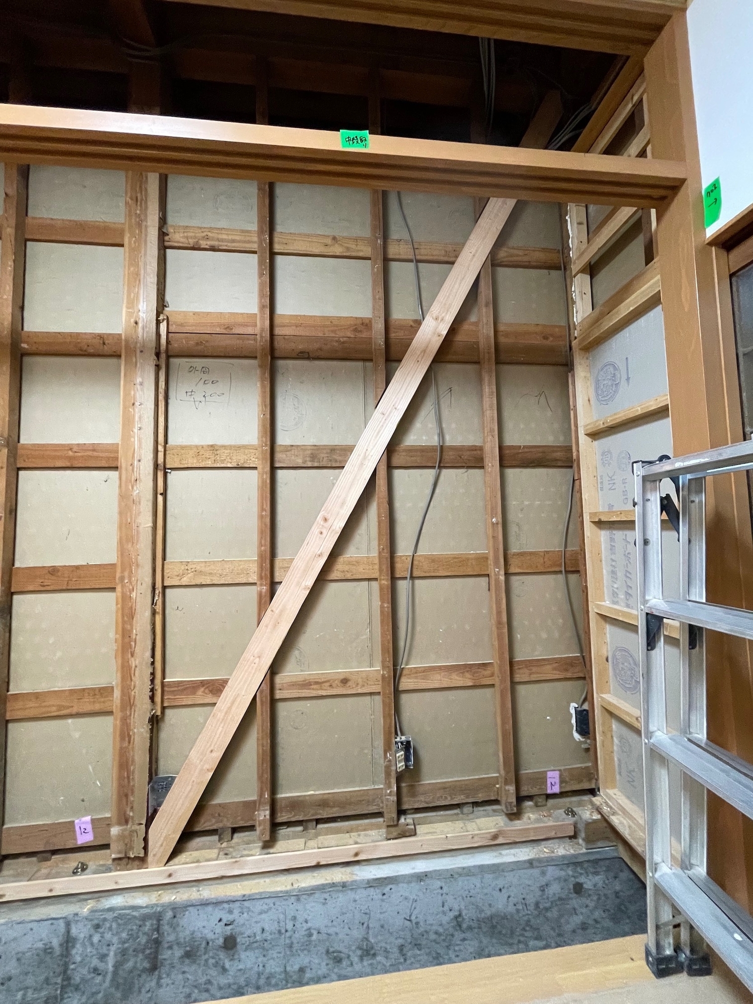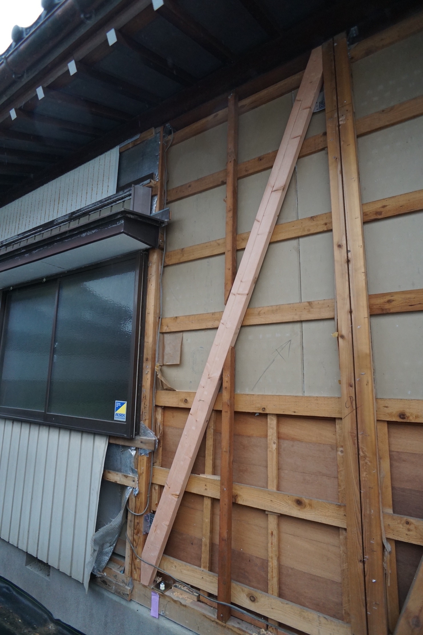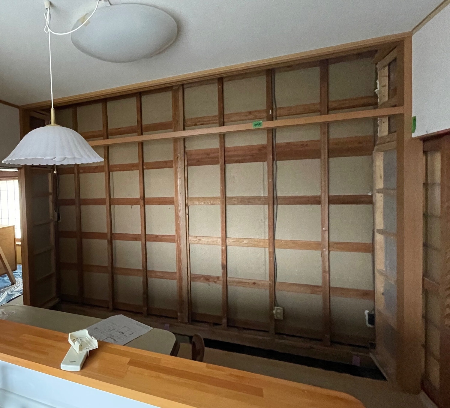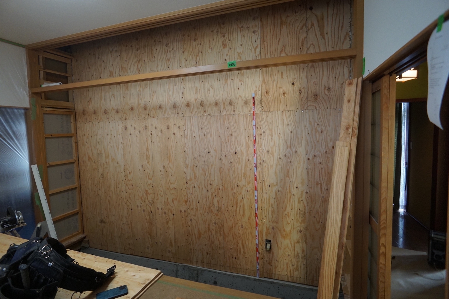 1階は座敷裏及び玄関横の外壁と内部からはダイニングキッチンと押入を耐震改修しています。