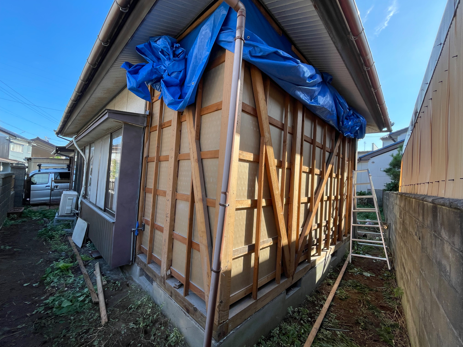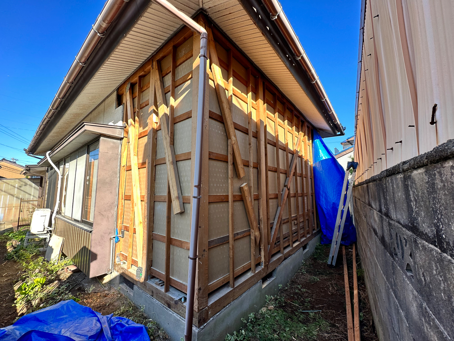 1階部は北部と南部の主に外壁からの改修。2階部は別業者の内装リフォームに支障が無いように壁位置を変更しないように耐力補強を行いました。