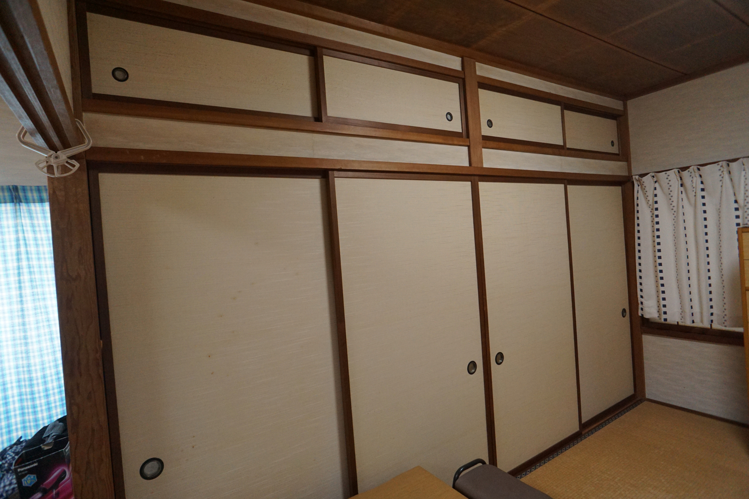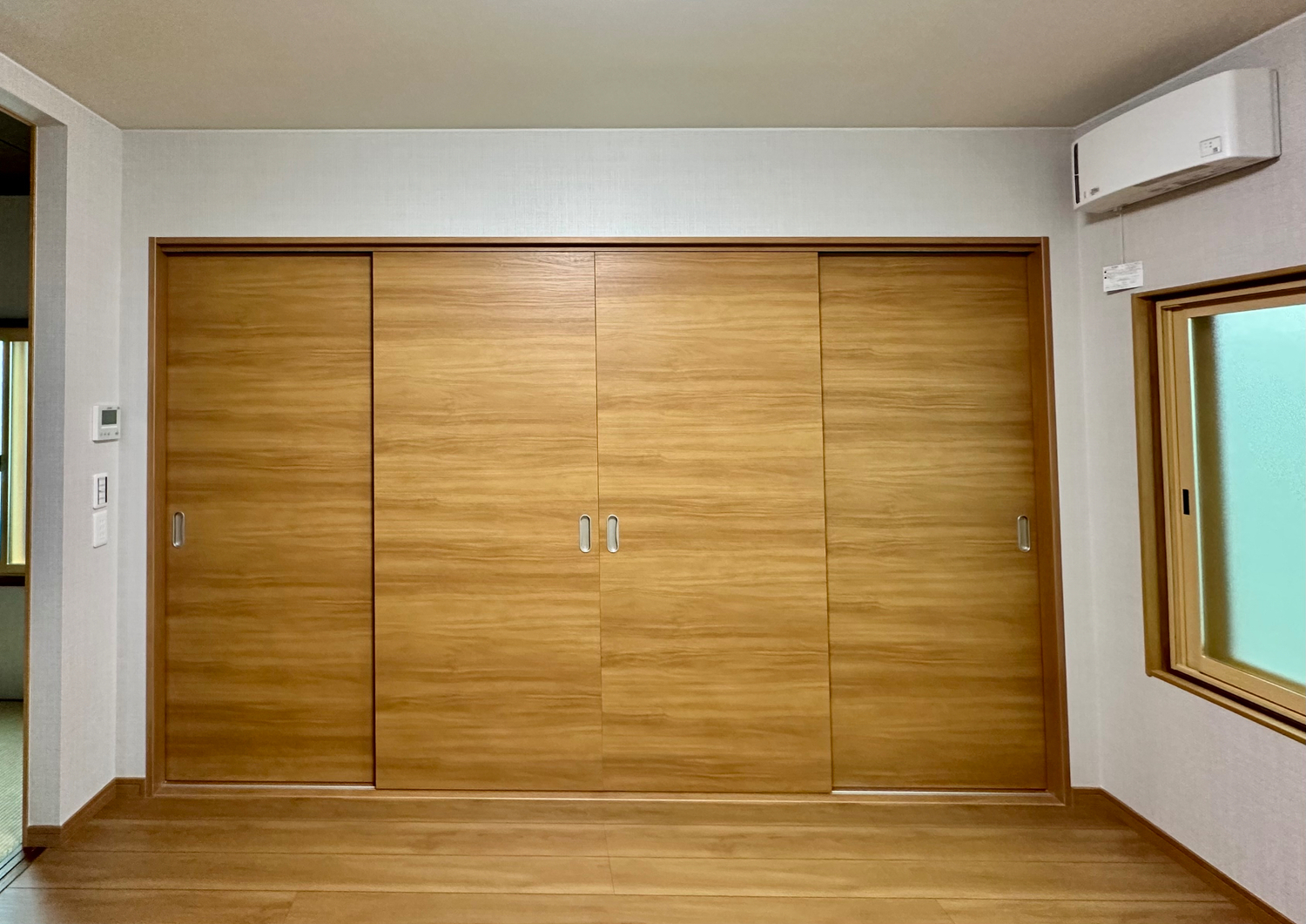押入の奥行きを改修前80cmから50cmに変更し引戸を設置、寝室を広くした。