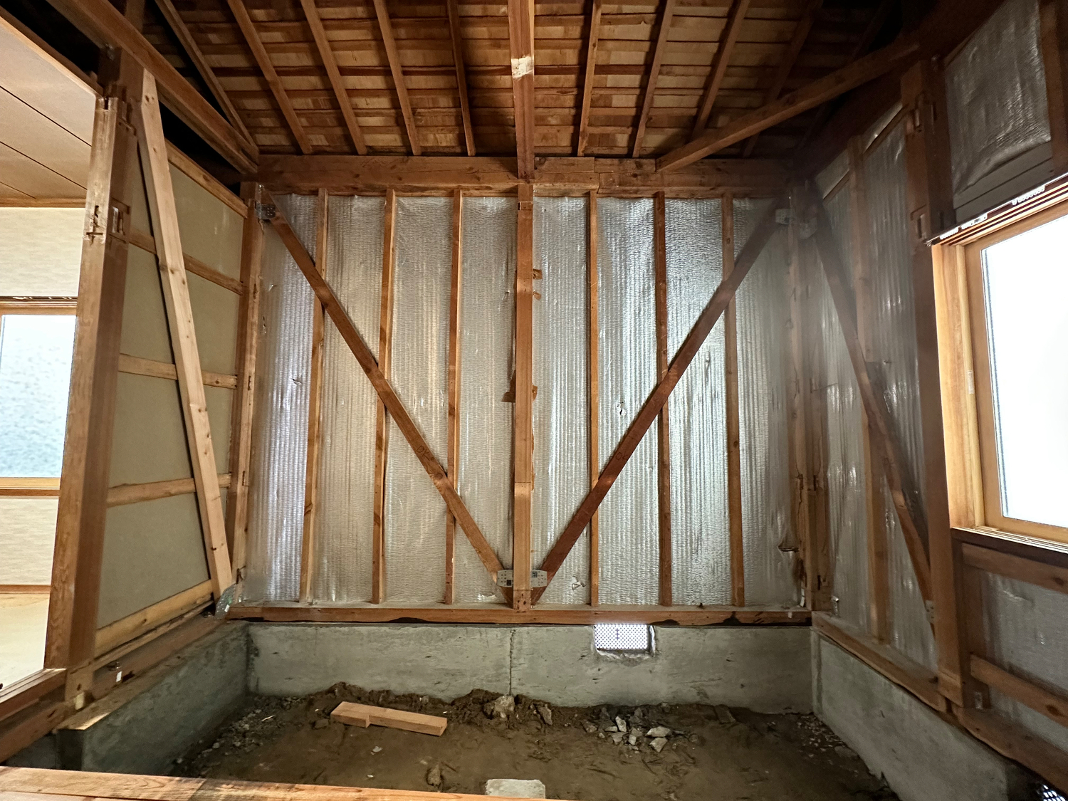1階耐震改修は、北部寝室と南部物入れにおいてバランス取った改修を行った。