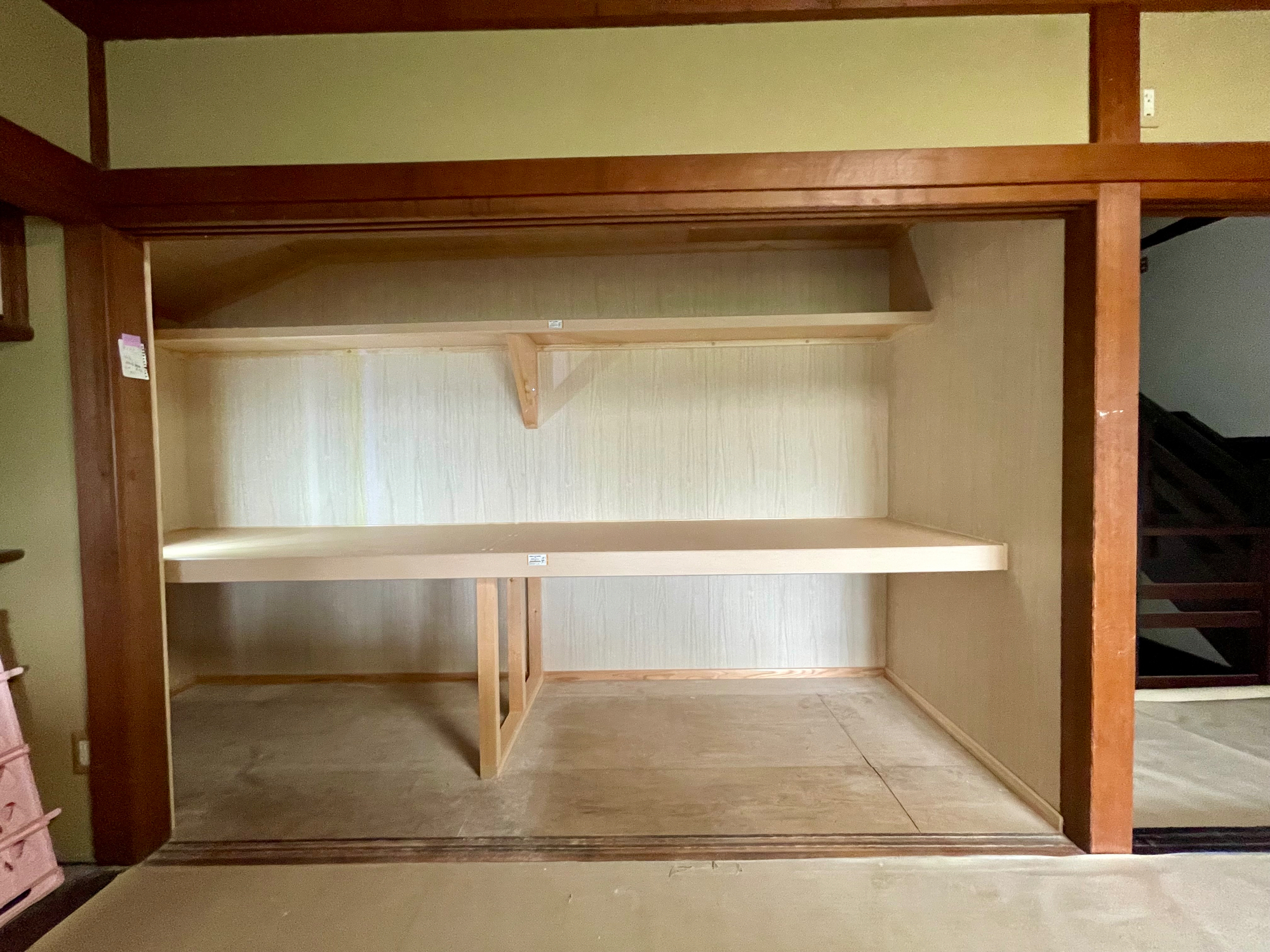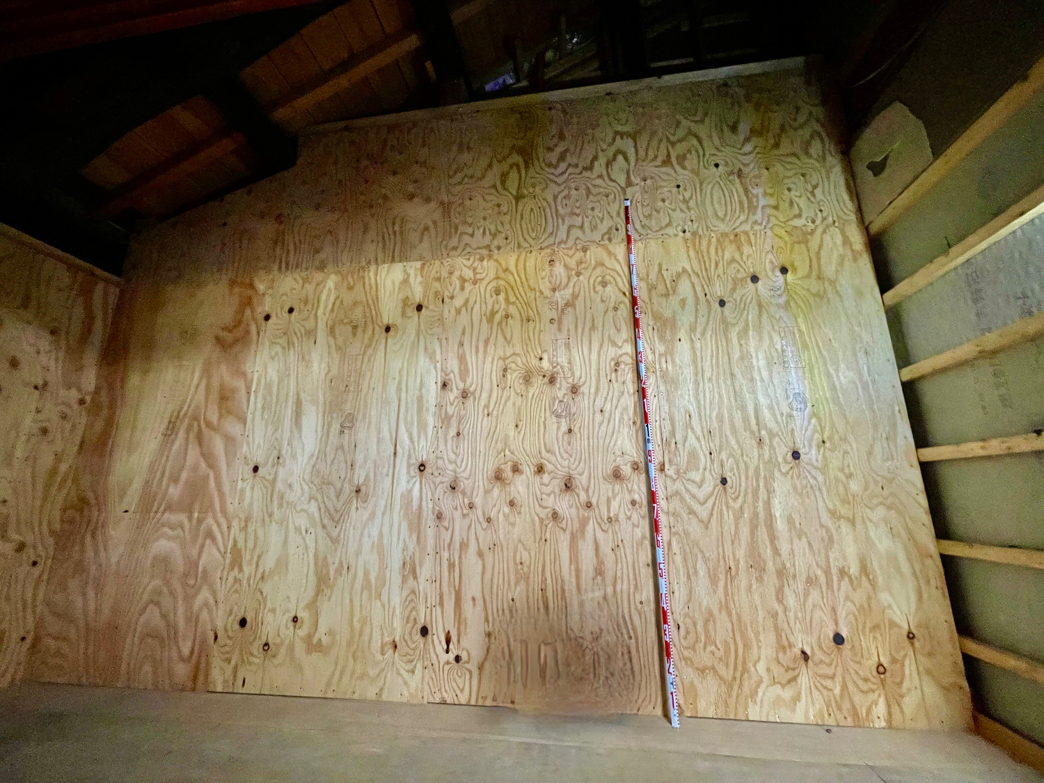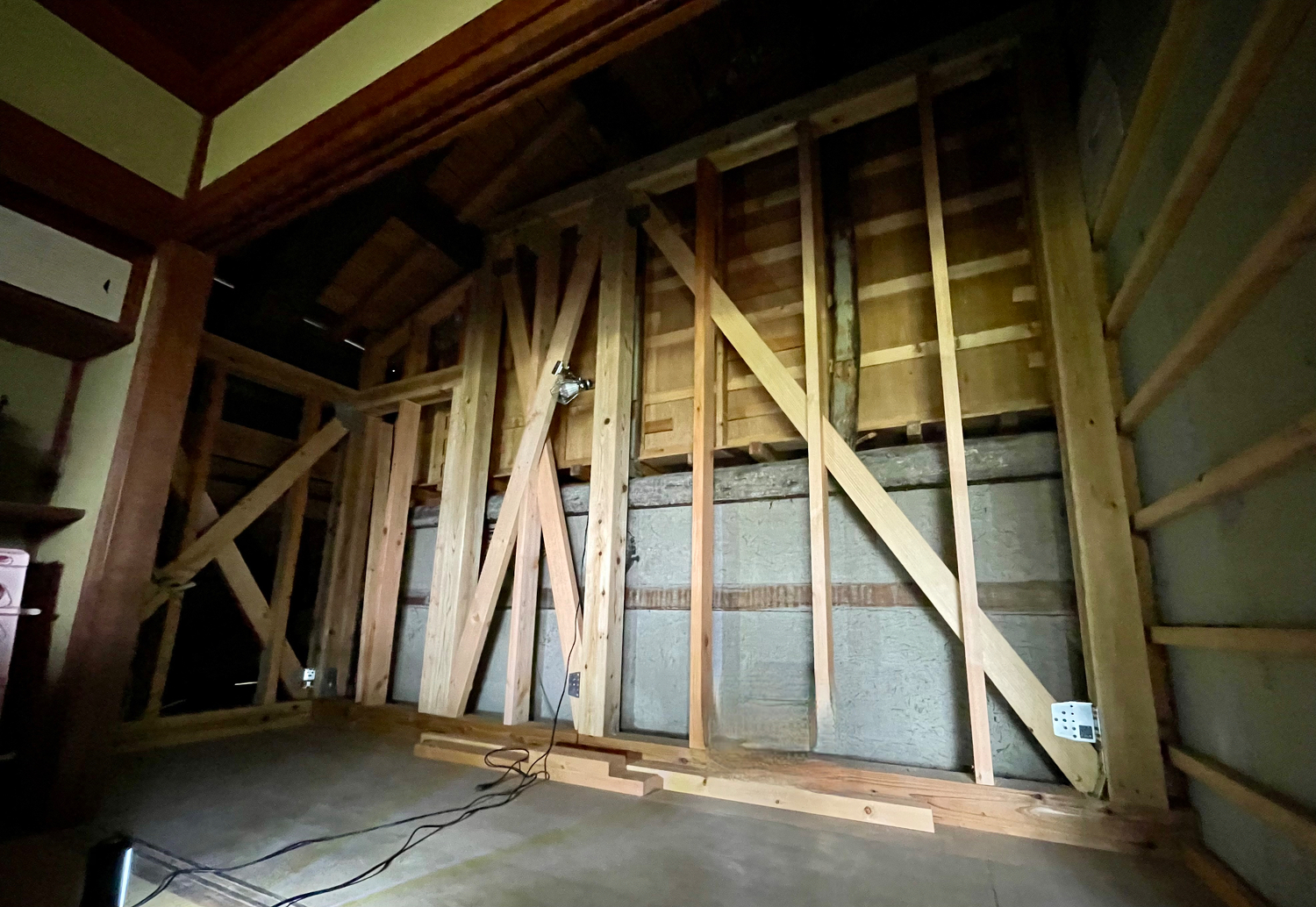 2階において、梁に出入り等があり、従来壁の内部に新規耐力壁を設置。