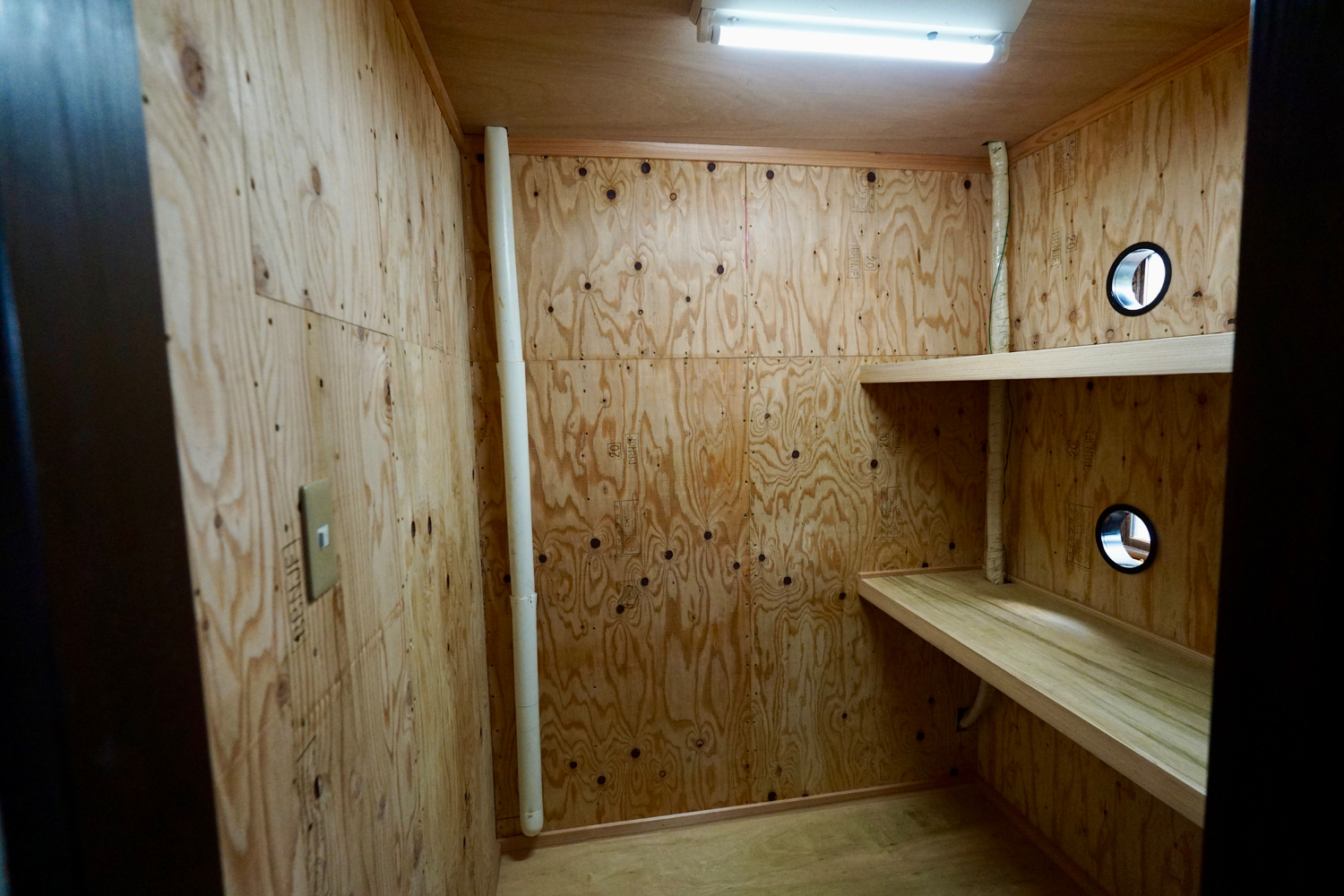 砺波地方典型的なアズマダチの建物であり、建物四隅及び中央にある、収納部にて耐力壁を設置。