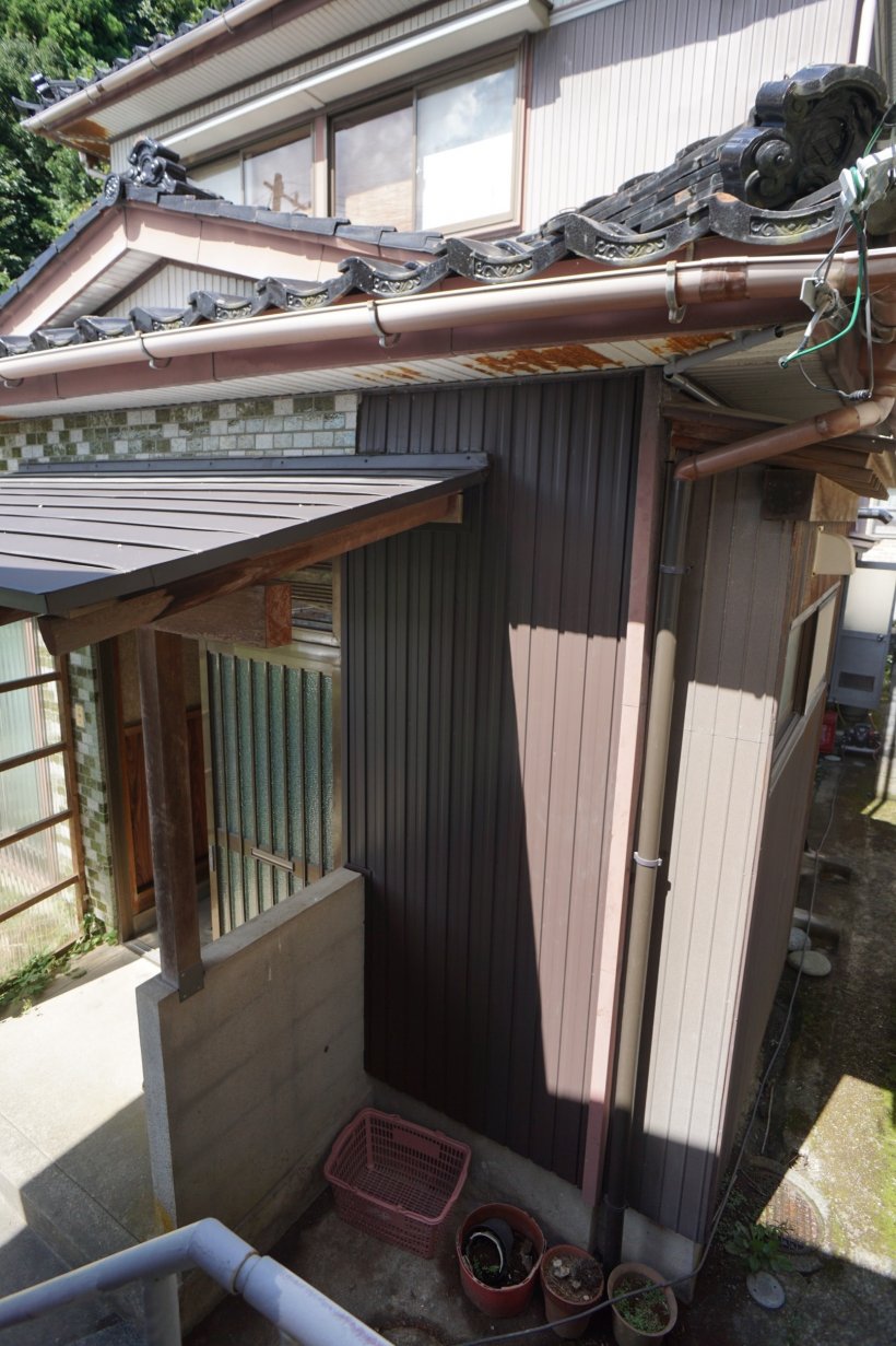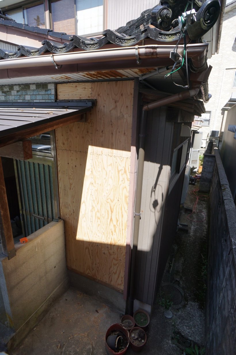 玄関横は外部からの改修としましたが、庇等との取り合いがあり、内部側のトイレの上部壁を撤去して改修を行っています。(トイレ内壁下部はタイル張りのため撤去せずに必要最小限の工事としました。)