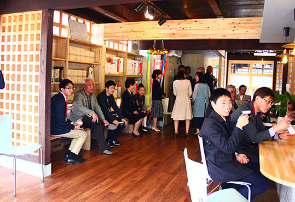 町内の空き家となっていた家屋について地元の人々が自ら活用方法を検討し、誰もが交流できる場所に改修。入口の近くにはキッチンカウンターが設置されており、コーヒーなどを飲みながら語り合えます。