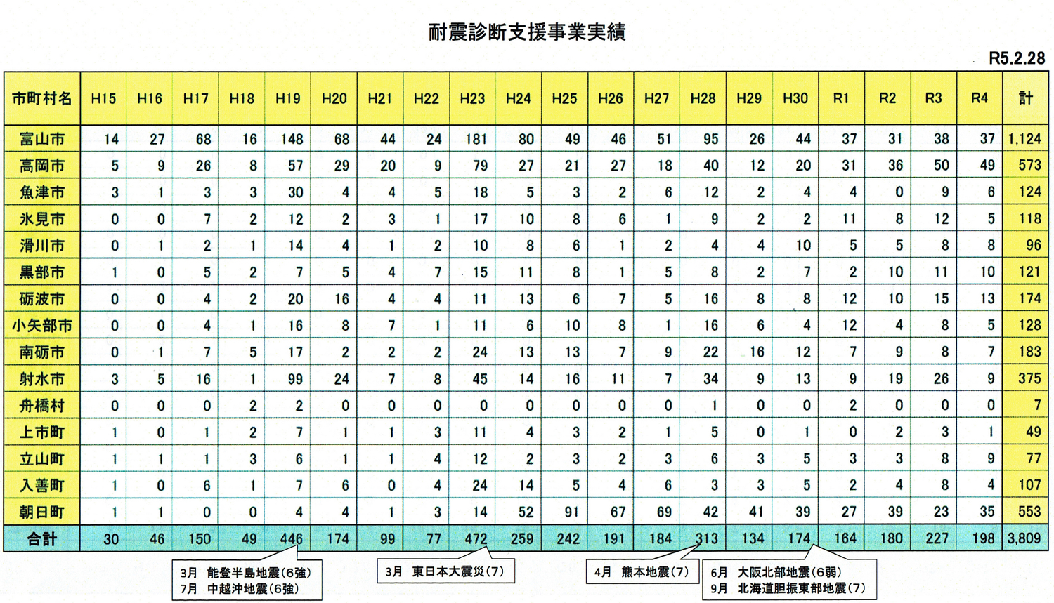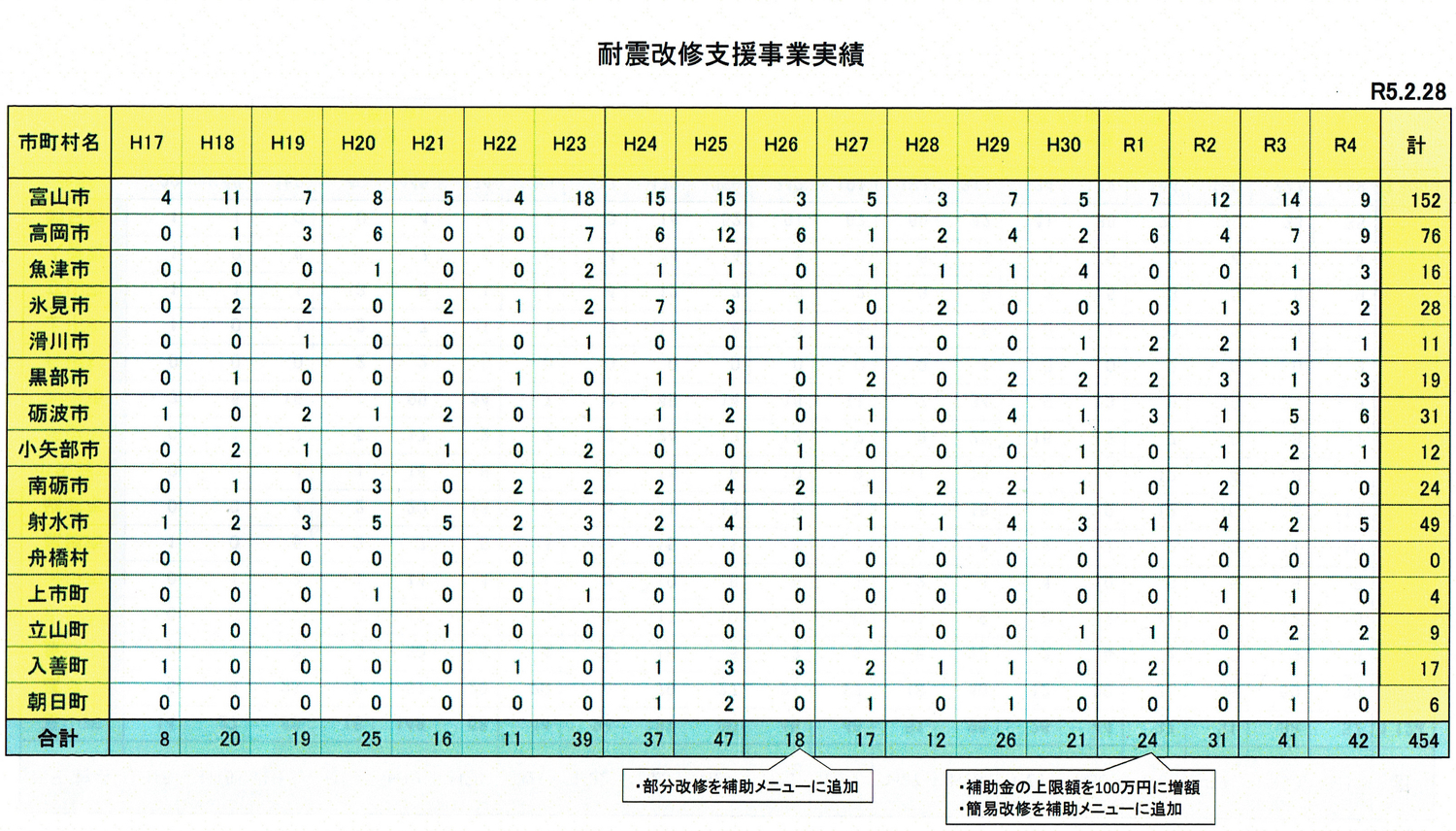 令和4年度富山県市町村別耐震診断・耐震改修件数