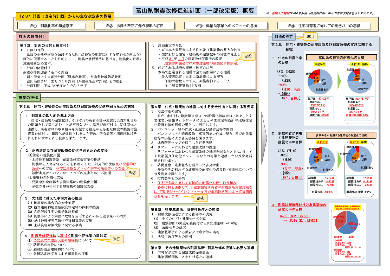 富山県全体の住宅耐震化計画(平成30年耐震性なし戸数約7万6千戸を令和7年に約3万8千戸にする目標)に対し、