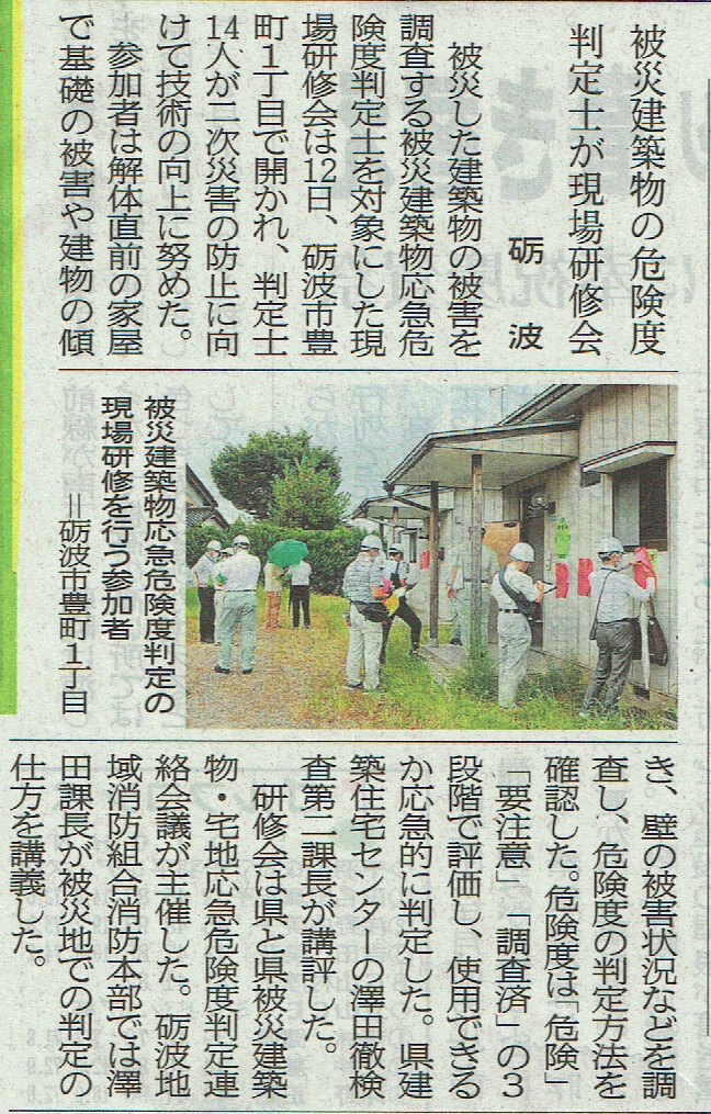 9月12日(火)砺波市で行われた富山県主催の被災建築物の応急危険度判定現場研修会に参加しました。