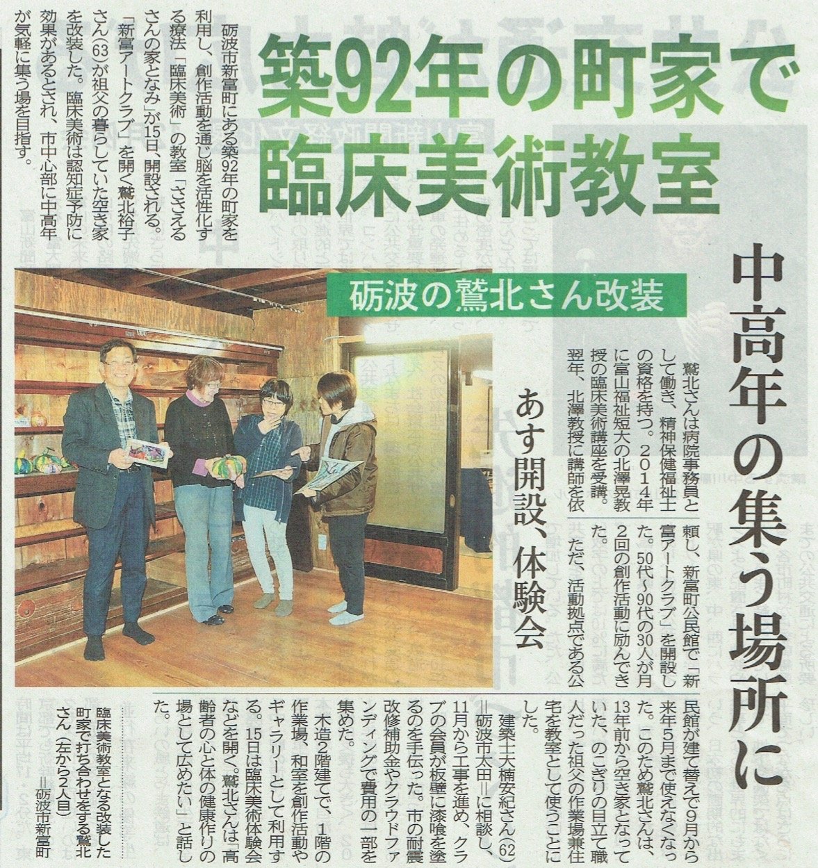 砺波市で私の改修物件の記事が富山新聞(12/14,16),北日本新聞(12/16)に掲載されました。