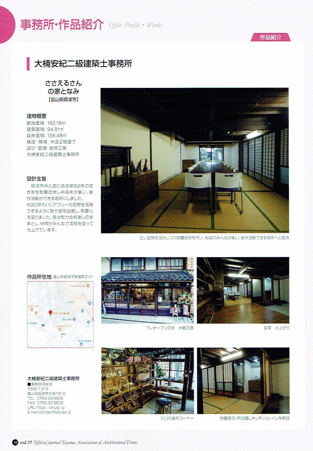 富山県建築士事務所協会機関誌「雷鳥」に作品紹介されました。 2020.03.02 富山県建築士事務所協会機関誌「雷鳥」に、昨年砺波市中心部で空き家の耐震改修を行った「ささえるさんの家となみ」が作品紹介されました。 最近、家庭(第1の場)でも職場(第2の場)でもない第3のとびきり居心地の良い場所「サードプレイス」がブームになっていますが、まさしく「ささえるさんの家となみ」はサードプレイスです。 改修をして新たな場所を提供することはたいへんだと思いますが、このような場の存在がどんどん色々な繋がりの輪を作っていきます。
