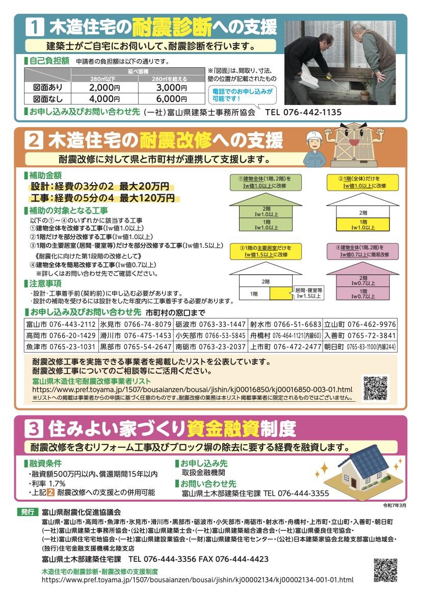 富山県木造住宅耐震改修支援事業各市町村支援窓口及び個別支援内容と条件 | お知らせ | 木造住宅耐震改修研究所