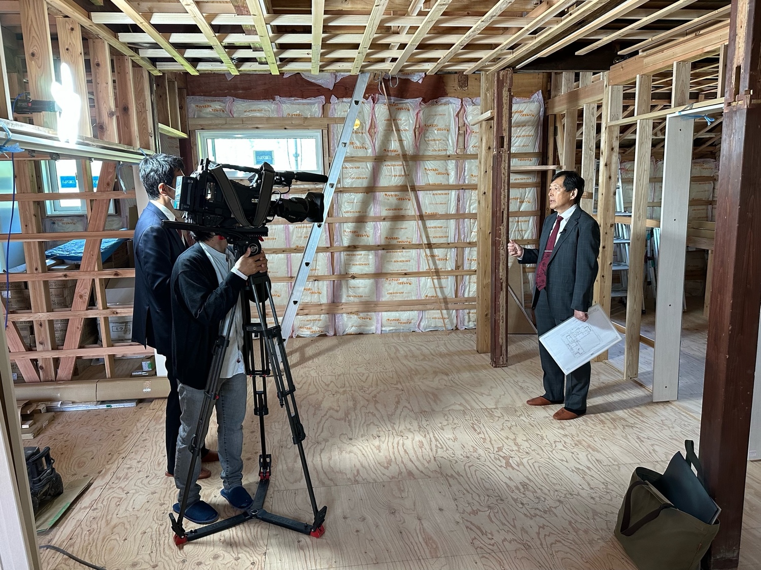 耐震改修現場での取材
