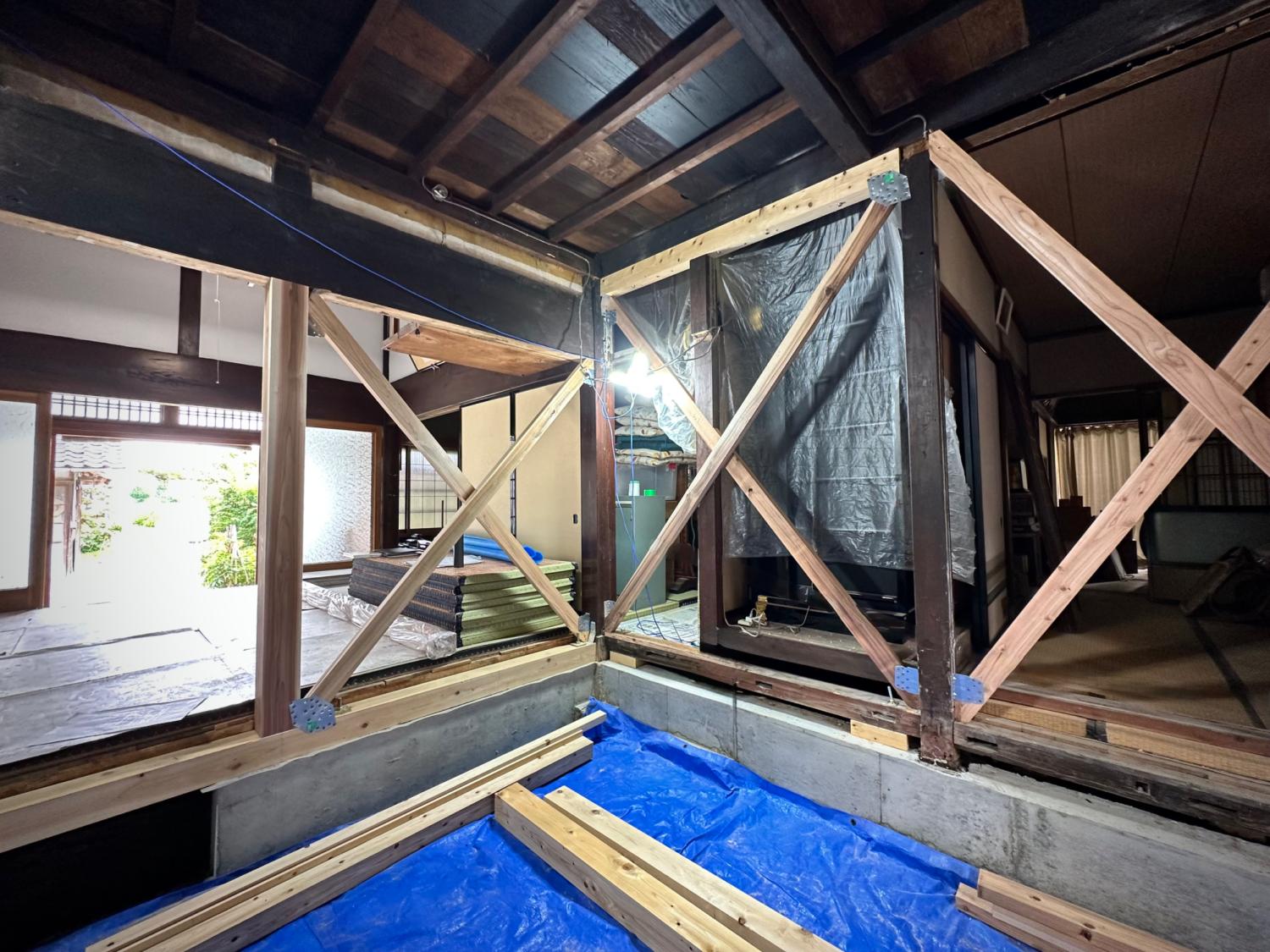 2024年耐震改修実績17件 2024.12.31 2024年実績は以下の通りとなりました。 耐震改修:17件(建物全体を上部構造評点1.0以上16件、1階のみの改修1件) 耐震設計:43件 耐震診断:51件 明治43年に建てられた砺波地方の典型的なアズマダチの建物です。改修前ワクノウチの様子 耐震改修施工中 改修後のワクノウチ風景、新規建具の両側に耐力壁を配置しています。耐震改修が行われたことが分からないように復帰しました。工事を行った、大工さん、基礎屋さん、建具屋さん、左官屋さん、塗装屋さんに感謝です。 改修後(外壁からの耐震補強を行っていますが、全く改修前と変わらない外観に仕上げています。) 改修前外観
