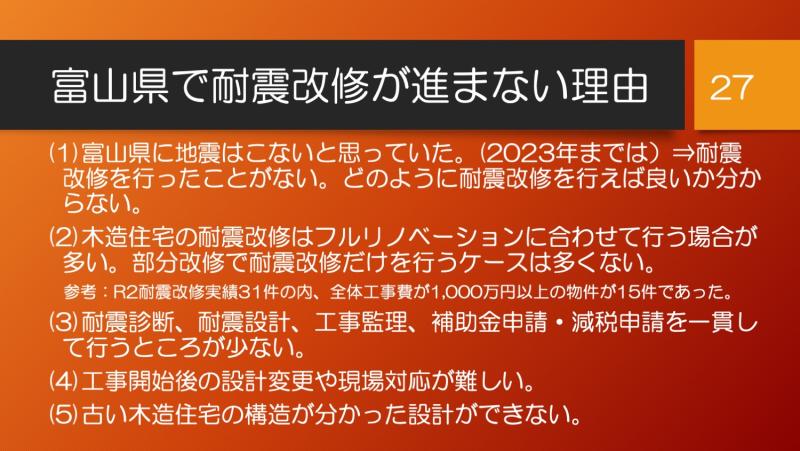 富山県建築士会富山支部講演会「木造住宅耐震改修の実態と進め方」